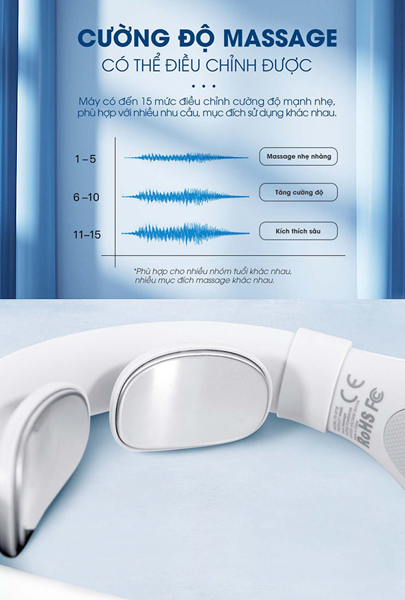 | Chế độ | 15 cường độ massage mạnh nhẹ |