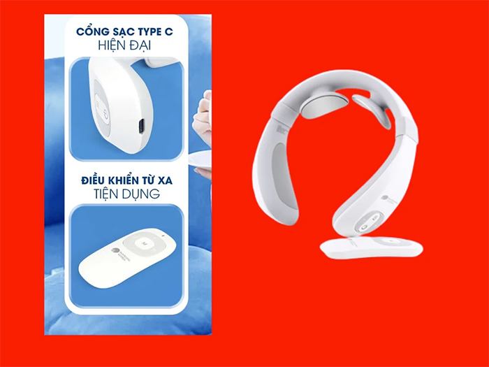Máy massage có hai phần đầu xung điện EMS tiếp xúc trực tiếp với phần da cổ, tăng hiệu quả massage. Các xung điện có khả năng tạo ra dòng điện sinh học giúp giảm đau, nhức mỏi, cải thiện tuần hoàn máu và trao đổi chất.